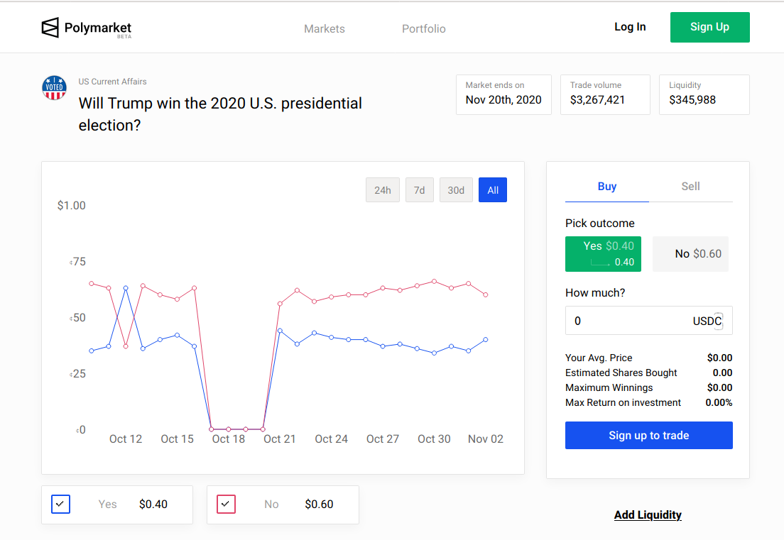 Morgen ist es soweit: Die USA wählt, wer für die nächsten vier Jahre der wichtigste Mann der Welt sein wird. Auf den Prediction Markets auf Ethereum und EOS kann man nachsehen, auf wen das Kryptogeld setzt - und selbst eine Wette einreichen.
