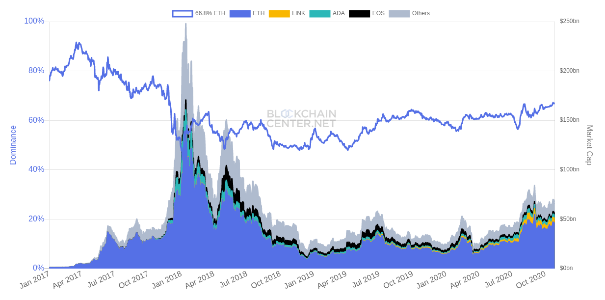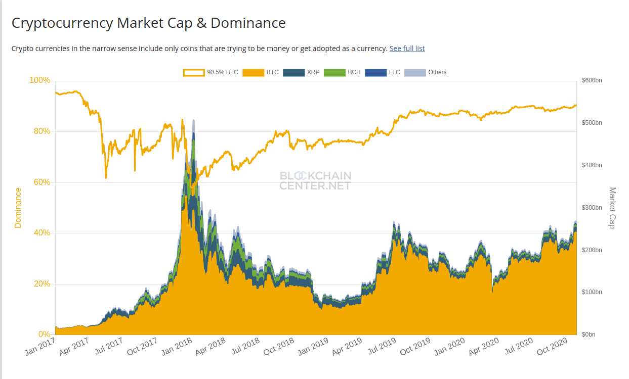 Anstatt alle Kryptowährungen in einen Topf zu werfen, ordnet das Münchner Blockchaincenter die Coins in Marktsegmente ein. So entsteht ein faszinierendes, vielschichtiges Bild des „Krypto-Marktes“, das viel über Netzwerkeffekte erzählt. Die derzeit üblicherweise verwendeten Dominanzindikatoren für den Kryptomarkt, findet Holger Rohm vom Münchner Blockchain Center, seien „kaputt.“ Denn sie werfen alle Coins ineinander und rechnen dann aus, welcher Marktanteil welcher Coin hat. Das ist, als würde man Äpfel nicht nur mit Birnen, sondern auch mit Orangen vergleichen. Auf seiner Webseite bietet Holger daher nun eine Alternative an. Inspiriert hat ihn dazu ein Tweet des neuen „Bitcoin-CEOs“ Michael Saylor von MicroStrategy, der mittlerweile bekannt ist für seine poetischen Hymnen auf Bitcoin, die nicht immer ganz frei von Lächerlichkeit sind. Aber das, was er hier schrieb, hat schon einen Punkt: Everyone in the crypto industry would benefit if analysts segmented the market into crypto-assets (e.g. #Bitcoin), crypto-applications (e.g. Ethereum), & crypto-currencies (e.g. Tether), and calculated three different dominance metrics.https://t.co/rnySXljPKN— Michael Saylor (@michael_saylor) October 20, 2020 Jeder in der Krypto-Branche würde, so Saylor, gewinnen, wenn die Analysten den Markt in verschiedene Segmente aufteilen würden – Krypto-Assets wie Bitcoin, Krypto-Anwendungen wie Ethereum und Krypto-Währungen wie Tether – um dann die spezifischen Dominanz-Metriken zu kalkulieren [...]